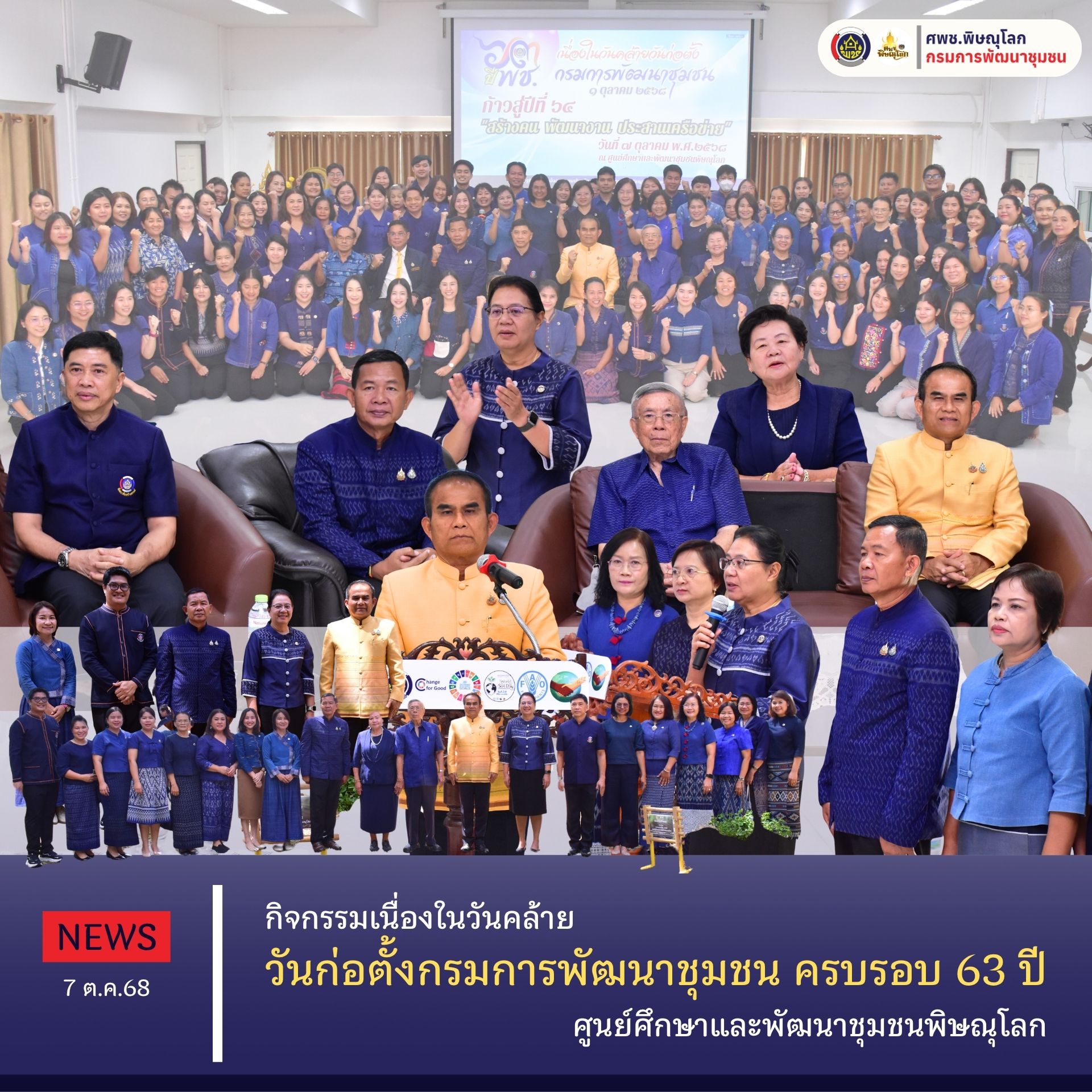 กิจกรรมเนื่องในวันคล้ายวันก่อตั้งกรมการพัฒนาชุมชน ครบรอบ 63 ปี ศูนย์ศึกษาและพัฒนาชุมชนพิษณุโลก วันอังคารที่ 7 ตุลาคม พ.ศ.2568