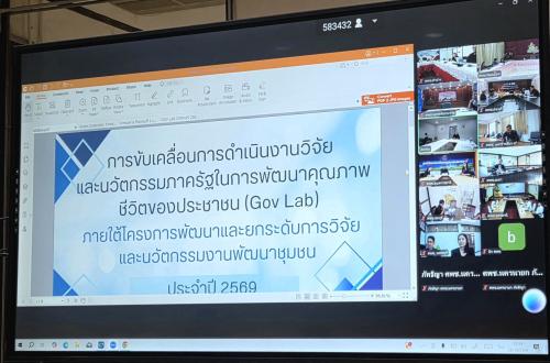 และยังได้กล่าวถึง กำหนดการดำเนินงานโครงการพัฒนาและยกระดับการวิจัยและนวัตกรรมงานพัฒนาชุมชน ประจำปี 2569 ซึ่งจะมุ่งเน้นการบูรณาการองค์ความรู้และการประยุกต์ใช้การวิจัยในภารกิจพัฒนาชุมชน ผ่าน 2 แนวทางสำคัญ ได้แก่