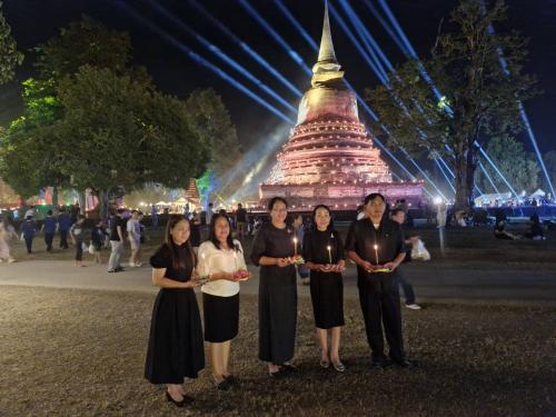 โอกาสนี้ ผู้ตรวจฯ ได้ร่วมทำกิจกรรม “ทำโบว์ไว้อาลัย” เพื่อใช้ติดเสื้อเป็นเครื่องหมายแสดงความอาลัย ความจงรักภักดีและน้อมรำลึกในพระมหากรุณาธิคุณอันหาที่สุดมิได้ ของสมเด็จพระนางเจ้าสิริกิติ์ พระบรมราชินีนาถ พระบรมราชชนนีพันปีหลวง ณ บริเวณกองอำนวยการประชาสัมพันธ์ OTOP ภายในงานประเพณีลอยกระทง เผาเทียนเล่นไฟ ณ อุทยานประวัติศาสตร์สุโขทัย