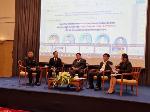 โดยในภาคบ่าย เป็นการสานเสวนาในหัวข้อ แนวทางการตรวจราชการ ตามนโยบายสำคัญเร่งด่วน "มหาดไทย ทำ ทันที Action 5" ในหัวข้อดังนี้