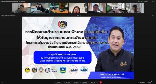 ศูนย์สารสนเทศเพื่อการพัฒนาชุมชน โดย กลุ่มงานพัฒนาระบบเทคดนโลยีสารสนเทศ ดำเนินการฝึกอบรม ด้านระบบคอมพิวเตอร์และเครือข่ายให้กับบุคลากรกรมการพัฒนาชุมชน โครงการเช่าวงจรสื่อสัญญาณอินเทอร์เน็ตความเร็วสูง 4 ระดับ ปีงบประมาณ พ.ศ. 2569 ณ ห้องประชุม 5001 ชั้น 5 กรมการพัฒนาชุมชน