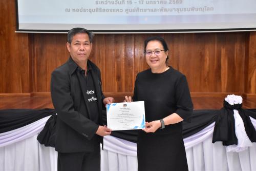 นางสาววริศรา โสภาค ผู้ตรวจราชการกรม ปฏิบัติหน้าที่ ผู้อำนวยการศูนย์ศึกษาและพัฒนาชุมชนพิษณุโลก เป็นประธานในพิธีปิดและมอบเกียรติบัตรแก่ผู้ผ่านการฝึกอบรม "โครงการเสริมสร้างและพัฒนาผู้นำการเปลี่ยนแปลง หลักสูตร Train the Trainer Course (ครู ข) รุ่นที่ 3" ดำเนินการระหว่างวันที่ 15-17 มกราคม 2569