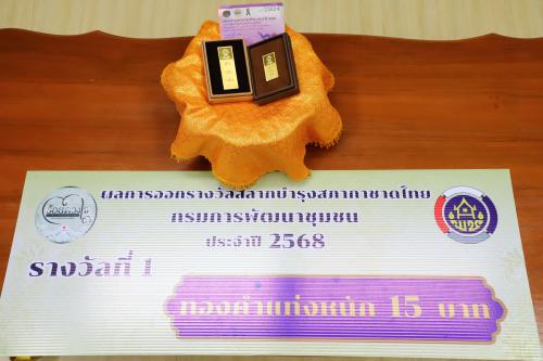 นางสาววริศรา โสภาค ผู้ตรวจราชการกรม ปฏิบัติหน้าที่ผู้อำนวยการศูนย์ศึกษาและพัฒนาชุมชนพิษณุโลก เป็นผู้แทนนำรางวัลมอบให้จังหวัดอุตรดิตถ์และร่วมเป็นสักขีพยานในการรับมอบรางวัล โดย นายสันติ รังษิรุจิ ผู้ว่าราชการจังหวัดอุตรดิตถ์ เป็นผู้มอบรางวัลให้แก่ผู้ที่ถูกรางวัลที่ 1 ทองคำแท่ง หนัก 15 บาท จำนวน 1 รางวัล จากสลากบำรุงสภากาชาดไทย ประจำปี 2568 กรมการพัฒนาชุมชน กระทรวงมหาดไทย โดยมี นายบรรพจน์ จันทร์งาม พัฒนาการจังหวัดอุตรดิตถ์ ผู้อำนวยการกลุ่มงาน พัฒนาการอำเภอ และเจ้าหน้าที่พัฒนาชุมชน ร่วมเป็นสักขีพยานและแสดงความยินดีแก่ผู้ที่ได้รับรางวัล