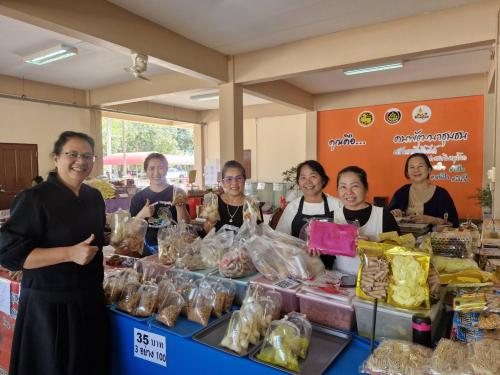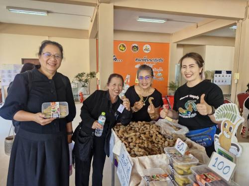 โดยได้ประสานเครือข่ายกลุ่มอาชีพและผู้ประกอบการ OTOP จังหวัดพิษณุโลก จำนวน 8 ราย นำผลิตภัณฑ์เด่นและของดีประจำจังหวัด จัดจำหน่ายให้กับกลุ่มเป้าหมายที่เข้ารับการฝึกอบรม "โครงการเสริมสร้างและพัฒนาผู้นำการเปลี่ยนแปลง หลักสูตร Train the Trainer Course (ครู ข) รุ่นที่ 4" นอกจากจะเป็นการอำนวยความสะดวกให้ผู้เข้าอบรมได้เลือกซื้อของฝากคุณภาพดีแล้ว ยังถือเป็นการเพิ่มช่องทางการจำหน่าย ประชาสัมพันธ์ภูมิปัญญา และสร้างรายได้หมุนเวียน สนับสนุนเศรษฐกิจชุมชนให้เติบโตอย่างยั่งยืน