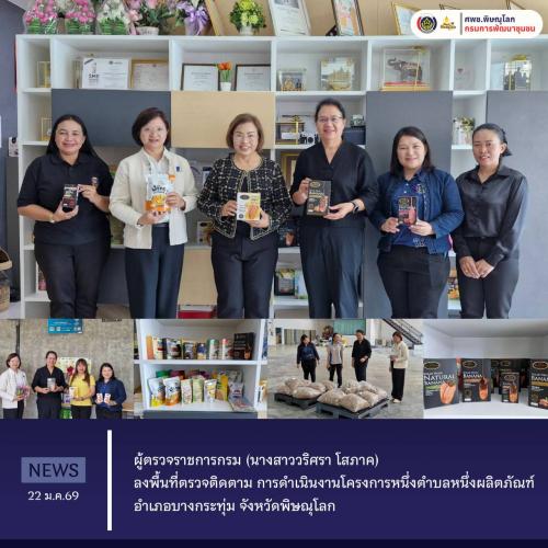 ผู้ตรวจราชการกรม (นางสาววริศรา โสภาค) ลงพื้นที่ตรวจติดตาม การดำเนินงานโครงการหนึ่งตำบลหนึ่งผลิตภัณฑ์ อำเภอบางกระทุ่ม จังหวัดพิษณุโลก