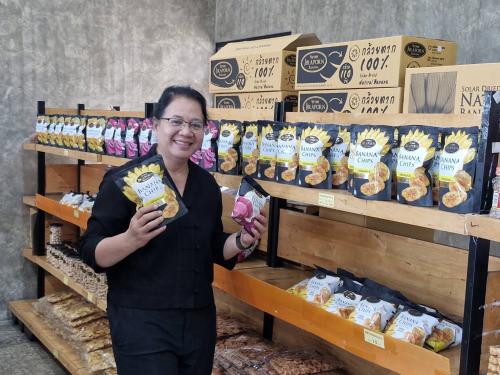 วันที่ 22 มกราคม 2569 เวลา 09.00 น. นางสาววริศรา โสภาค ผู้ตรวจราชการกรม ปฏิบัติหน้าที่ ผู้อำนวยการศูนย์ศึกษาและพัฒนาชุมชนพิษณุโลก พร้อมด้วย นางยุพา กลิ่นหอม ผู้อำนวยการกลุ่มงานยุทธศาสตร์การพัฒนาชุมชน สำนักงานพัฒนาชุมชนจังหวัดพิษณุโลก ลงพื้นที่เยี่ยมและให้กำลังใจกลุ่มผู้ผลิตผู้ประกอบการ OTOP ราย กล้วยตากจิราพร ในเขตพื้นที่อำเภอบางกระทุ่ม จังหวัดพิษณุโลก โดยมีคุณจิราพร พงศ์รุจิกรพันธ์ เจ้าของแบรนด์ นางนิตยา รอดเทศ พัฒนาการอำเภอบางกระทุ่ม และเจ้าหน้าที่พัฒนาชุมชนอำเภอบางกระทุ่ม ร่วมให้การต้อนรับและนำเยี่ยมชมโรงงานการผลิต โดยคุณจิราพร เล่าว่า ที่บางกระทุ่มมีการทำกล้วยตากกันมากว่า 70 ปี และกว่า 30 ปีแล้วที่ครอบครัวเริ่มต้นทำกล้วยตากเพื่อขายส่งให้ร้านขายของฝากในจังหวัด ในตอนแรกใช้กล้วยในท้องถิ่นเป็นวัตถุดิบและตากบนห้างร้านที่ทำขึ้นกลางแจ้ง ในช่วงฤดูแล้งที่แดดดีก็จะได้ผลผลิตดี แต่จะเจอปัญหาในฤดูฝนเพราะอุณหภูมิและความชื้นที่ไม่เหมาะสม ทำให้กล้วยขึ้นราเสียหายที่ต้องทิ้งก็ไม่น้อย ต่อมามีความคิดที่จะทำเป็นผลิตภัณฑ์ของตัวเอง จึงเริ่มเข้าสู่การเป็นผู้ผลิตผู้ประกอบการ OTOP เริ่ม พัฒนาผลิตภัณฑ์ บรรจุภัณฑ์ และมองหาเทคโนโลยีที่จะมาช่วยให้สามารถผลิตกล้วยตากได้ผลผลิตสม่ำเสมอและได้คุณภาพทั้งด้านรสชาติและด้านสุขอนามัย รวมถึงการออกแบบบรรจุภัณฑ์ให้หรูหราทันสมัย มีความพรีเมี่ยม เหมาะสำหรับเป็นของฝากที่ระลึกที่ดึงดูดสายตานักท่องเที่ยว เพื่อสร้างโอกาสในการขยายตลาดได้กว้างขึ้น สามารถจัดจำหน่ายที่ห้างสรรพสินค้าชั้นนำภายในประเทศ และร้านค้าพันธมิตรในต่างประเทศ และปัจจุบัน แบรนด์กล้วยตากจิราพร ได้หันมาโฟกัสการมีตัวตนในโลกออนไลน์มากขึ้น การลงคอนเทนต์โซเชียลมีเดีย, เทคนิคเขียนแคปชั่น, การออกแคมเปญในกระแส, การค้นหากลยุทธ์ปรับตัวที่เข้ากับองค์กร หรือการมองหาฐานลูกค้าใหม่ ๆ ในออนไลน์ เพื่อให้ผู้บริโภคเข้าถึงได้มากขึ้น