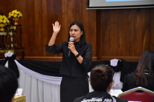 โดยมี นางสาวสุราพร ดวงเนตร ผู้อำนวยการกลุ่มงานจิตอาสาพระราชทานและกิจการพิเศษ ปฏิบัติหน้าที่ผู้อำนวยการกลุ่มงานสารบรรณกลางและอำนวยการ สำนักงานเลขานุการกรม กรมการพัฒนาชุมชน ดำเนินกิจกรรมฝึกอบรม