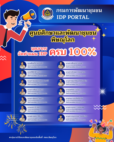 ซึ่งการจัดทำแผน IDP ครบ 100% ของบุคลากร ศพช.พิษณุโลก เป็นการแสดงให้เห็นถึงการไม่หยุดนิ่งที่จะพัฒนาตนเอง ในสมรรถนะทั้ง 4 ด้าน โดยเฉพาะความยืดหยุ่นและความคิดสร้างสรรค์ ที่จะเป็นกุญแจสำคัญทำให้ ศพช.พิษณุโลก สามารถบริการประชาชนและสนับสนุนงานพัฒนาชุมชนได้อย่างมีประสิทธิภาพ ทันต่อสถานการณ์โลกที่เปลี่ยนแปลงไป