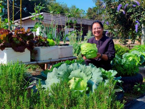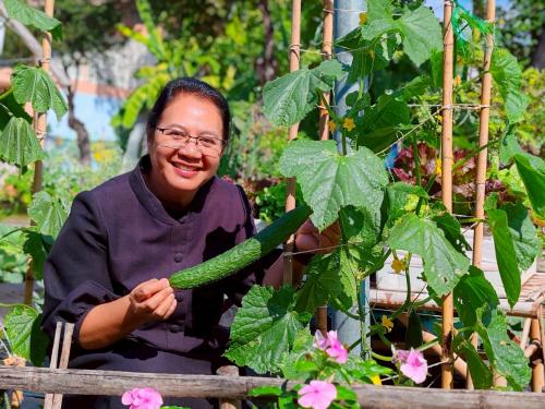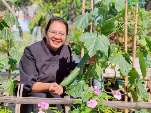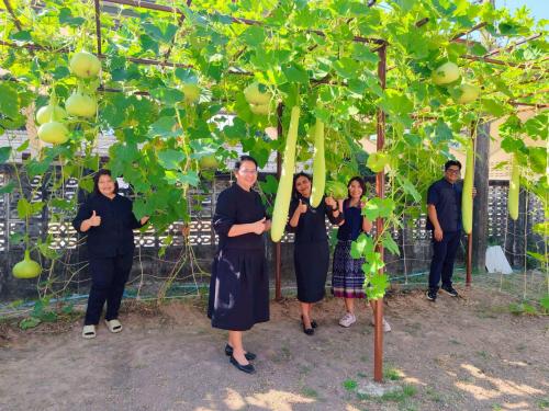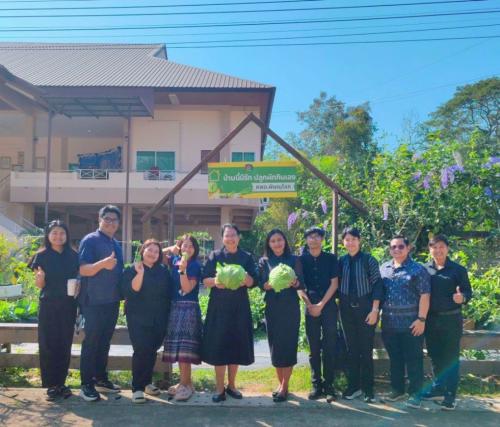 ลงพื้นที่เยี่ยมชมแปลงผักสวนครัวที่เป็นผลสำเร็จจากการดำเนินโครงการ “บ้านนี้มีรัก ปลูกผักกินเอง” ซึ่งเป็นกิจกรรมที่ส่งเสริมให้บุคลากรในสังกัด น้อมนำแนวพระราชดำริของสมเด็จพระกนิษฐาธิราชเจ้า กรมสมเด็จพระเทพรัตนราชสุดาฯ สยามบรมราชกุมารี มาปรับใช้ในการสร้างคลังอาหารปลอดภัยภายในองค์กร โดยเน้นการทำเกษตรอินทรีย์ 100% ไม่ใช้สารเคมี เพื่อสุขภาพที่ดีของบุคลากรและเป็นต้นแบบให้แก่ประชาชนที่เข้ามาศึกษาดูงาน