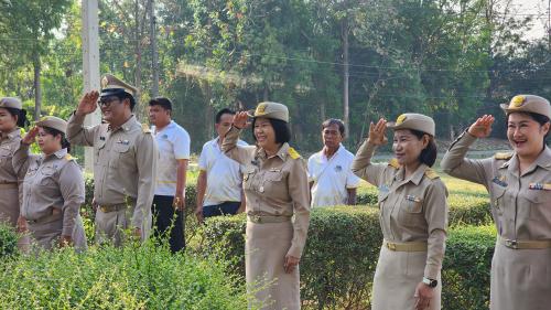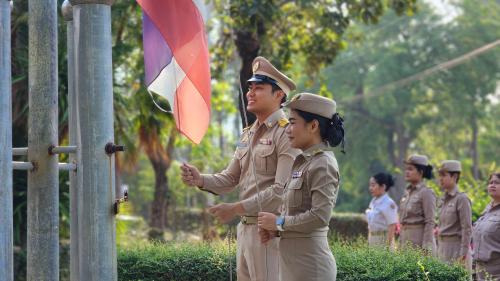 ในการนี้ นางเตือนใจ อุ่นจันทร์ ผู้อำนวยการกลุ่มงานราชการ ได้กล่าวเน้นย้ำถึงความหมายของสีทั้งสามบนผืนธงชาติ ซึ่งสะท้อนถึงความเสียสละและความเป็นหนึ่งเดียวกันของคนในชาติ พร้อมทั้งมอบแนวทางการปฏิบัติงานรายสัปดาห์ โดยให้ความสำคัญกับการพัฒนาพื้นที่ภายในศูนย์ฯ ให้สะอาด เป็นระเบียบเรียบร้อย และมีความพร้อมในการให้บริการประชาชนและปฏิบัติภารกิจตามนโยบายของกรมการพัฒนาชุมชน