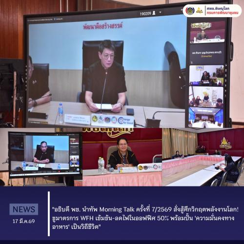 "อธิบดี พช. นำทัพ Morning Talk ครั้งที่ 7/2569 สั่งสู้ศึกวิกฤตพลังงานโลก! ชูมาตรการ WFH เข้มข้น-ลดไฟในออฟฟิศ 50% พร้อมปั้น 'ความมั่นคงทางอาหาร' เป็นวิถีชีวิต"