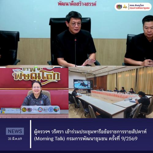 ผู้ตรวจฯ วริศรา เข้าร่วม ประชุมหารือข้อราชการรายสัปดาห์ (Morning Talk) กรมการพัฒนาชุมชน ครั้งที่ 9/2569
