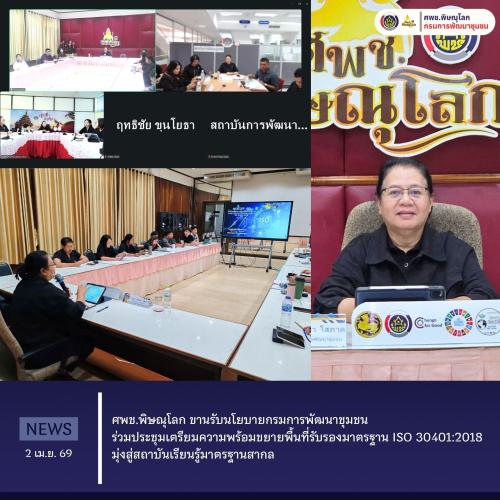 ศพช.พิษณุโลก ขานรับนโยบายกรมการพัฒนาชุมชน ร่วมประชุมเตรียมความพร้อมขยายพื้นที่รับรองมาตรฐาน ISO 30401:2018 มุ่งสู่สถาบันเรียนรู้มาตรฐานสากล