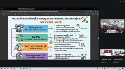 ในการนี้ นางสาววริศรา โสภาค ผู้ตรวจราชการกรม ปฏิบัติหน้าที่ผู้อำนวยการศูนย์ศึกษาและพัฒนาชุมชนพิษณุโลก พร้อมด้วยเจ้าหน้าที่ศูนย์ศึกษาและพัฒนาชุมชนพิษณุโลก เข้าร่วมประชุมเตรียมความพร้อมการขยายพื้นที่รับรองมาตรฐานระบบการจัดการความรู้สากล (ISO 30401:2018) อย่างพร้อมเพรียง ผ่านระบบออนไลน์ Zoom Cloud Meetings เพื่อสร้างความเข้าใจและวางแผนการดำเนินงานในส่วนที่เกี่ยวข้องเตรียมความพร้อมในทุกมิติเพื่อรองรับการตรวจประเมิน และยกระดับภาพลักษณ์ของหน่วยงานสู่ระดับสากล การประชุมในครั้งนี้ถือเป็นก้าวสำคัญของกรมการพัฒนาชุมชนในการขยายขอบเขตการรับรองมาตรฐาน ISO 30401:201