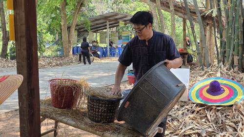 • ฐานคนหัวเห็ด: เรียนรู้การเพาะเห็ดฟางในตระกร้าที่ทำได้ง่ายในครัวเรือน สร้างแหล่งอาหารและรายได้เสริม