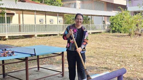 นางสาววริศรา โสภาค ผู้ตรวจราชการกรม ปฏิบัติหน้าที่ ผู้อำนวยการศูนย์ศึกษาและพัฒนาชุมชนพิษณุโลก นำบุคลากรในสังกัดดำเนินกิจกรรมพัฒนาพื้นที่ สร้างวิถี ศพช.พิษณุโลก ให้น่าอยู่ ณ บริเวณลานออกกำลังกาย โดยมีวัตถุประสงค์เพื่อปรับปรุงภูมิทัศน์บริเวณศาล และร่วมกันพัฒนาลานออกกำลังกาย