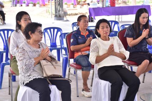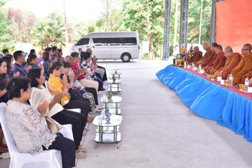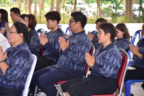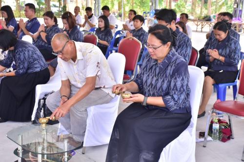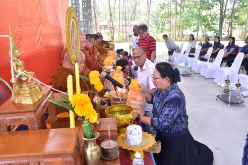 จากนั้นเวลา 09.00 น. ประธานในพิธีนำบุคลากรและแขกผู้มีเกียรติร่วมพิธีบำเพ็ญกุศล ถวายภัตตาหารและจตุปัจจัยไทยธรรมแด่พระสงฆ์จำนวน 9 รูป เพื่อเป็นการบำรุงพระพุทธศาสนาและสร้างขวัญกำลังใจให้แก่ข้าราชการในสังกัด