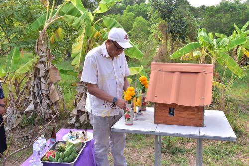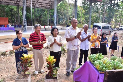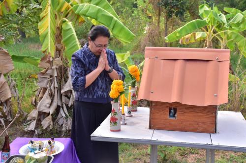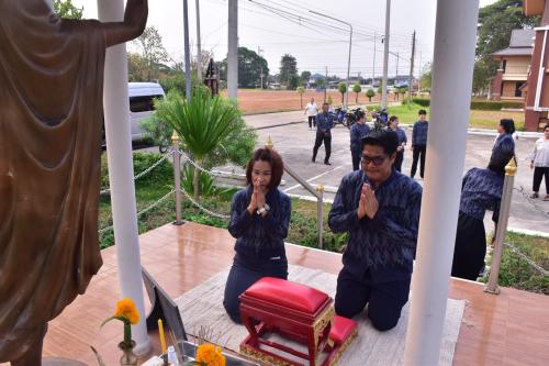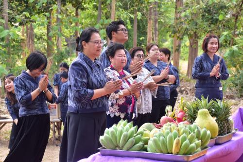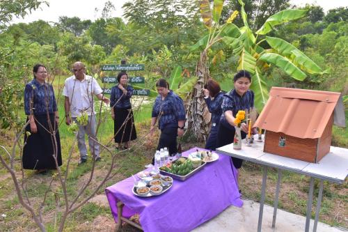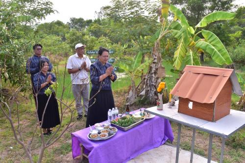 สักการะศาลาพระพุทธพัฒนปชานาถ และศาลเจ้าที่ ณ พื้นที่เรียนรู้ "โคก หนอง นา"
