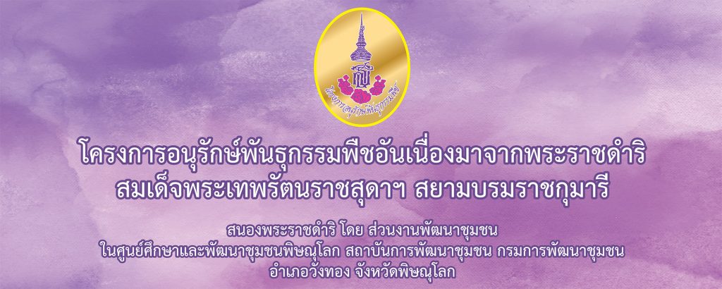 การดำเนินงานกิจกรรมสนองพระราชดำริโครงการอนุรักษ์พันธุกรรมพืชอันเนื่องมาจากพระราชดำริ สมเด็จพระเทพรัตนราชสุดาฯ สยามบรมราชกุมารี กรมการพัฒนาชุมชน (อพ.สธ.) ศพช.พิษณุโลก
